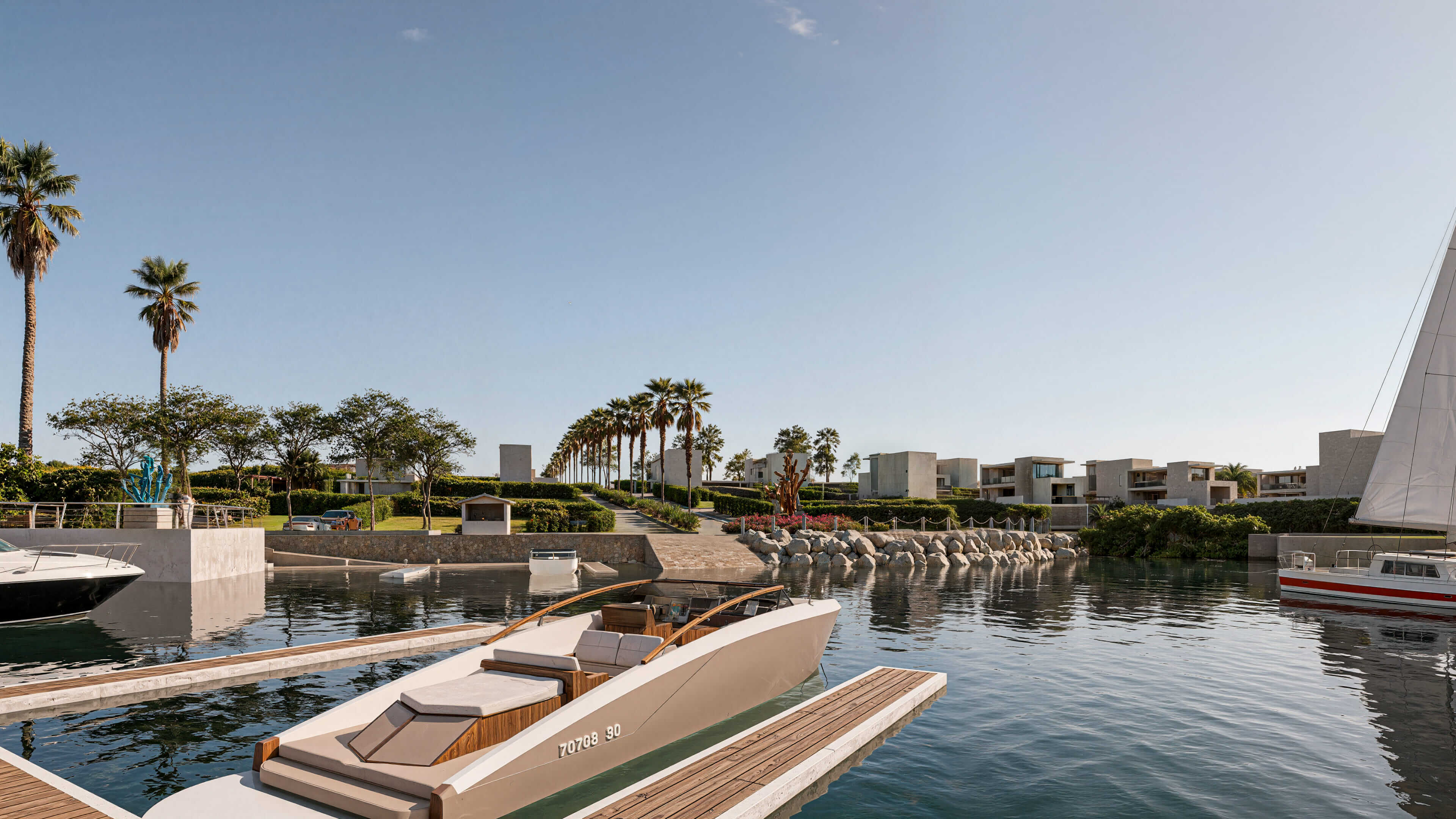 • Marina privada y canales navegables
